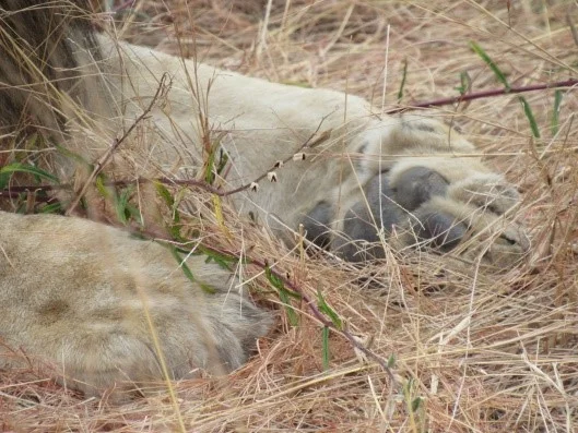 Lion’s paws can grow as large as twelve inches across. Their nails are terrifying. But one of the thrills of going on safari is knowing that our guides will find places to park the sturdy Land Rovers where we can quietly and safely observe and photograph these powerful paws without disturbing the lions. If we step out of the Land Rover and get between a dad and his offspring, we would likely be the next appetizer on the table. But for some reason, the wild animals don’t distinguish quiet humans in the vehicles the same way they do when we are on foot. Pausing quietly inside our vehicle gives our group lots of time to take photos that rival those of the professionals. More than that, it thrills us to see them living the natural lives they way I saw them on “The Wild Kingdom” on television when I was younger, and when we look at our photos, I know I’ve seen a wild kingdom in person.